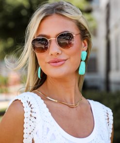 The Key Largo Tortoise Round Sunglasses will keep your look on the absolute cutting edge of trends! These essential summer sunglasses have a circle shape and gradient lenses with gold wire frames and tortoise outlining. Save your eyes the strain and harmful rays with a pair of sunglasses that never compromise style or function. Gold Wire Frames Tortoise Outline Circle Shape Gradient LensesOne Size | Frame Length 5.5″ | Height 2″ | Temple Arm Length 5.5″