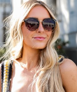 When you want to impress, you’ll have a secret weapon with the On An Adventure Black Round Sunglasses! These essential summer sunglasses have a circle shape with black frames with gradient lenses and tortoise detailing! Save your eyes the strain and harmful rays with a pair of sunglasses that never compromise style or function. Circle Shape Gold Wire Frames Gradient Lenses Tortoise DetailingOne Size | Frame Length 5.5″ | Height 2″ | Temple Arm Length 5.5″